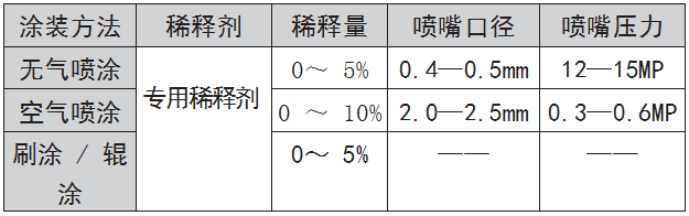 ★在高溫季節施工時,易發生干噴。為防止干噴現象的發生,須以稀釋劑稀釋至不干噴為止。